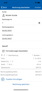 Sie können auch bereits generierte Angebote und Rechnungen als Vorlage verwenden und die Daten abändern.